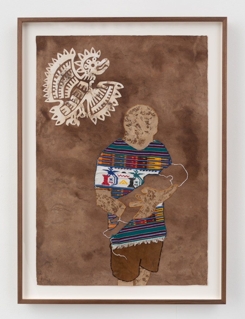Artists Arleene Correa Valencia, Kwesi Kwarteng, Ruth Jeyaveeran, and Alia Ali reclaim traditional materials and formats—such as amate paper, wool, and textiles—once used to document migration and ritual, transforming them into conduits of living memory and cultural interconnectedness. These works invoke the visual and tactile language of survival, using the handmade as a site of protest and proof of continued existence.