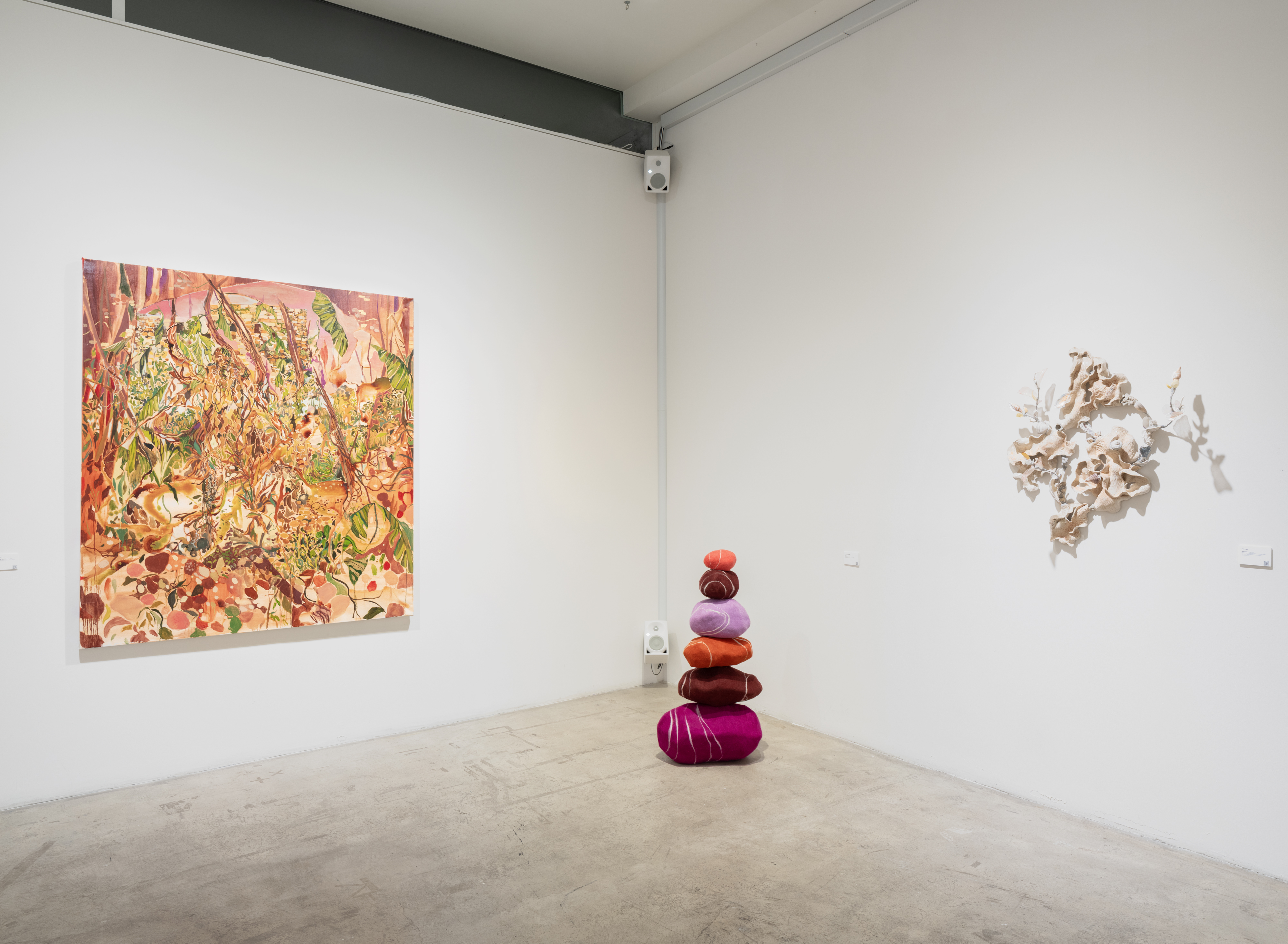 Material hybridity plays a central role throughout. Shuyi Cao fuses organic and synthetic matter—sea glass, coral bones, salvaged metal and plastic—into sculptures that resemble fossils from imagined futures. These paradoxical objects evoke drift, ecological rupture, and spiritual inheritance. They are maps not of nations, but of migrations—of tide, memory, and erosion.