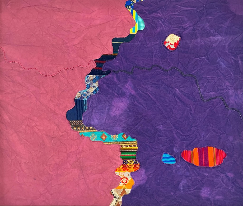Kwesi O. Kwarteng weaves together diverse textiles from around the world as symbolic “voices” in a global dialogue, celebrating cultural distinctiveness while highlighting shared connections. Through layered patterns, colors, and fabrics rich with meaning, his textile works become hospitable spaces of storytelling.