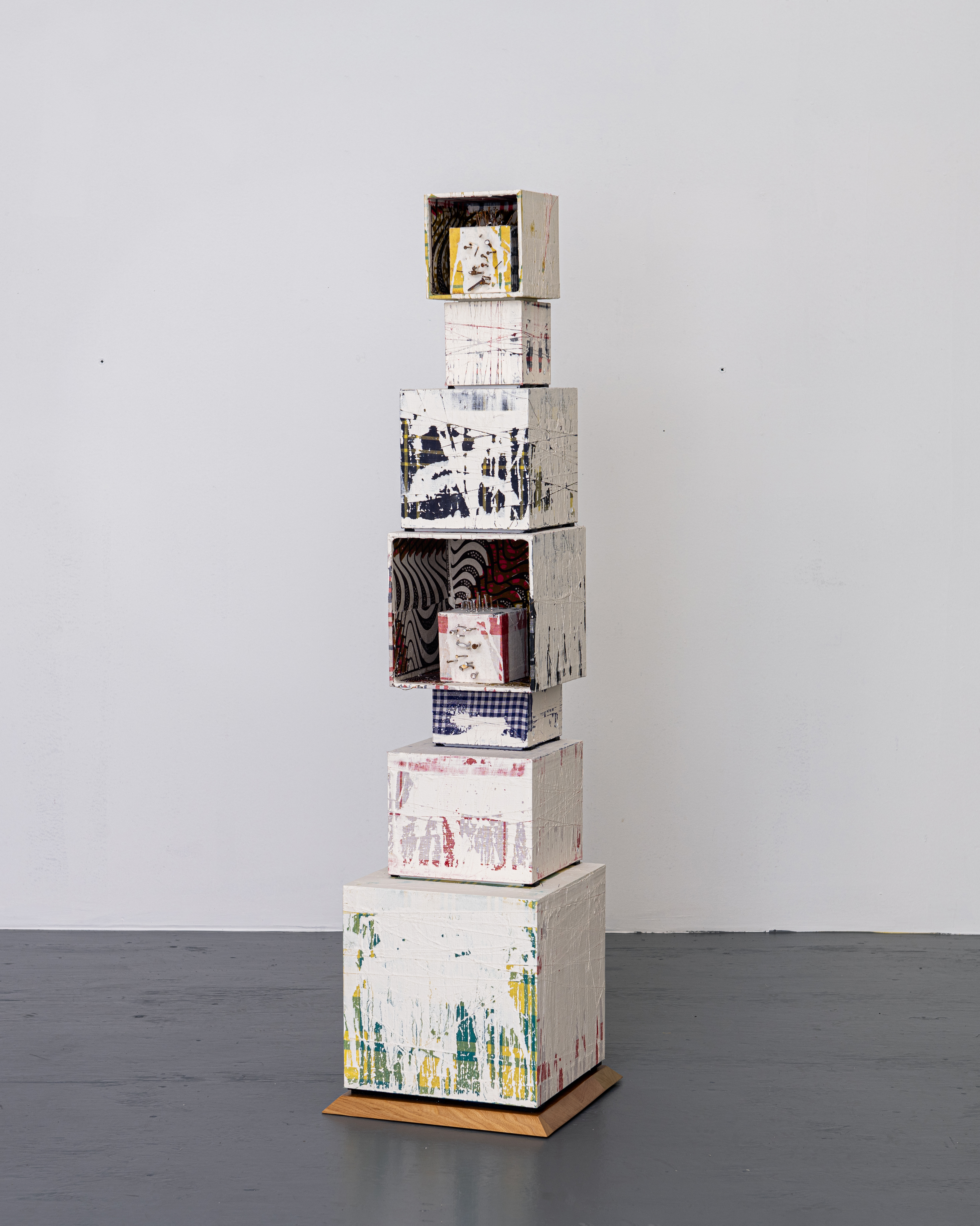 For over three decades, Jungerman has explored the intersection of Surinamese Maroon culture, the African diaspora, and 20th-century Modernism. His work incorporates materials such as cotton textiles, kaolin clay (pimba), and wood—elements central to the Afro-Surinamese Winti religion. Using ritual textiles and gridded compositions, he reflects on spiritual symbolism and the elemental forces of water, earth, air, and forest.