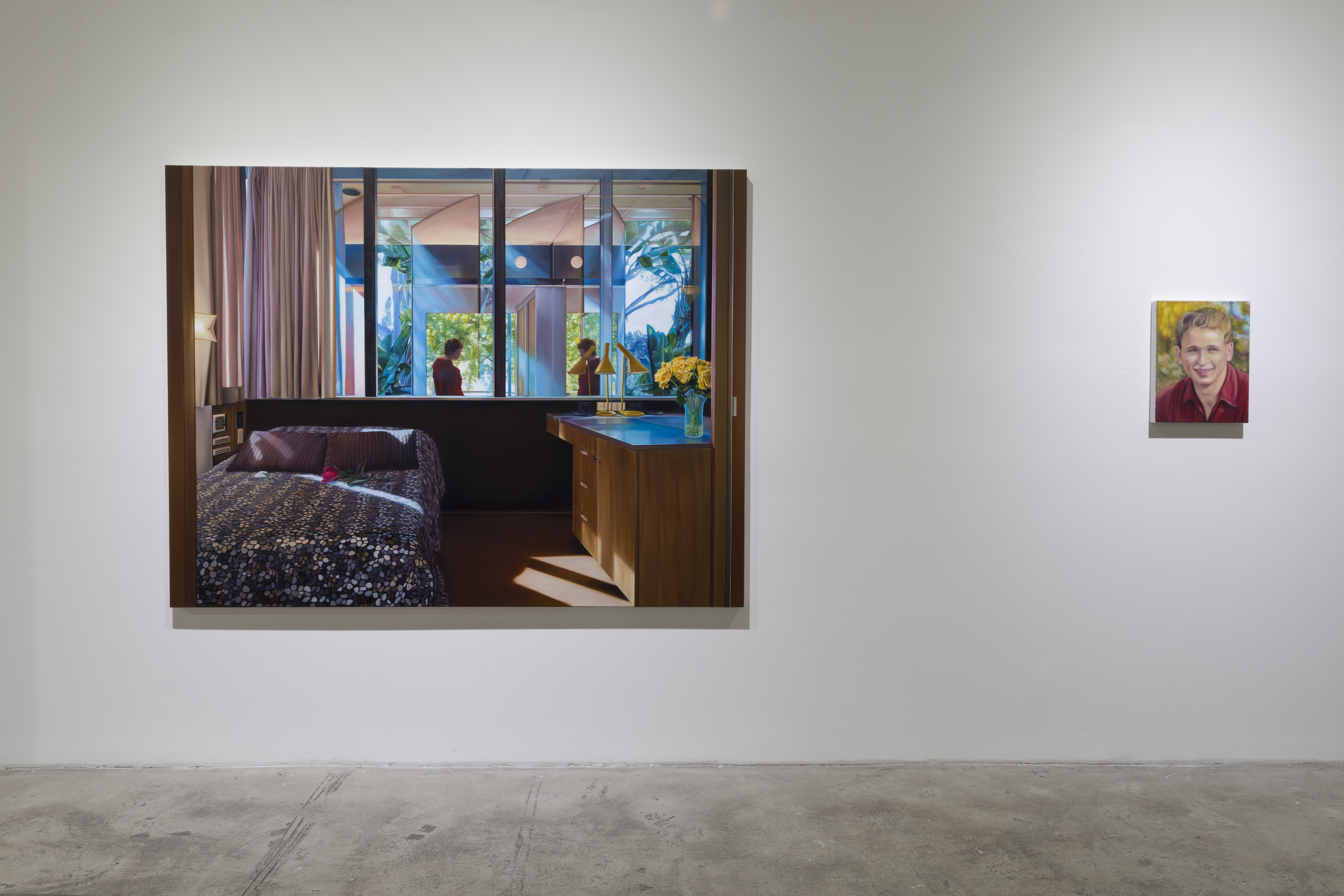 Alina Grasmann is a realist painter whose large-scale, site-specific series blur fact and fiction. Her works are inspired by her travels, American architecture, film, and literature. Each series contains about 10–20 paintings, all based on specific locations. Grasmann researches places and then visits them in real life, recording her experiences and the atmosphere through photographs.