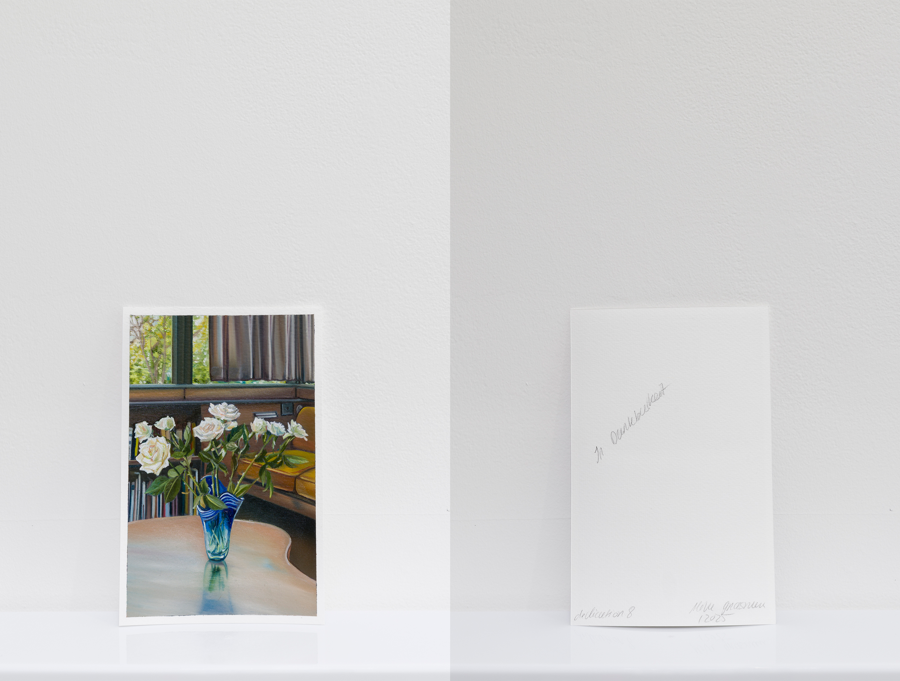 Roses anchor the series — symbols of haven, remembrance, and transition between past and present. Fire, a recurring motif, embodies transience and renewal. The Neutra House itself was rebuilt after a fire in 1963, mirroring how destruction and reconstruction are intrinsic to memory.