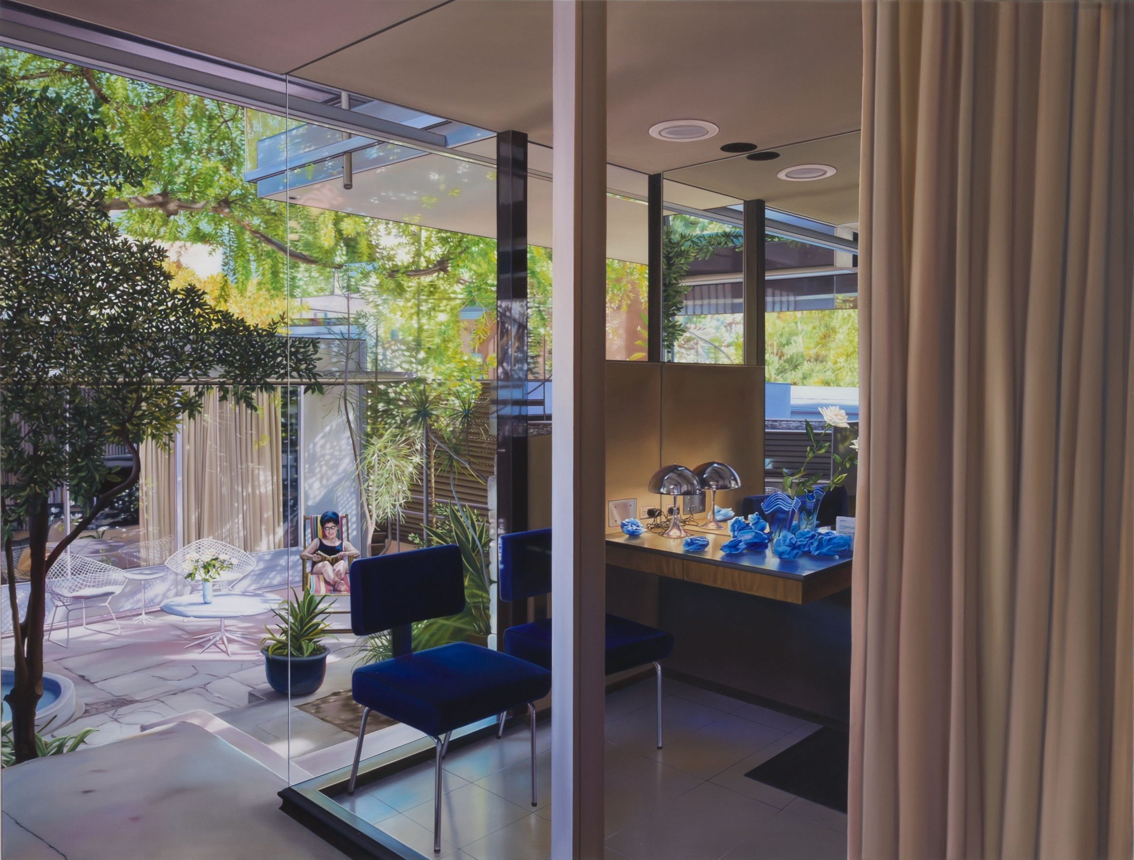 Grasmann’s new body of work, House of the Spirits, depicts the Neutra House, designed and built in Los Angeles in 1932 by Austrian-American architect Richard Neutra. The series debuted at a museum in Germany, Brühler Kunstverein, in May 2025.