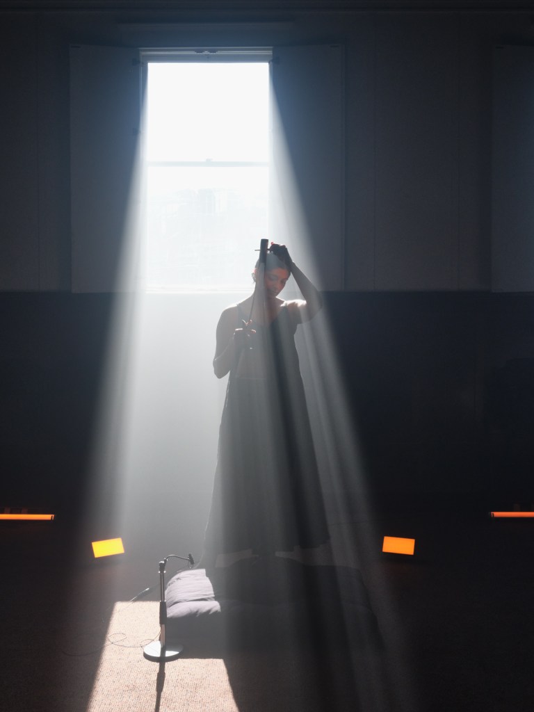 The exhibition includes an octophonic (eight-channel) sound installation by Samita Sinha and Daniel Neumann, titled Co-emergence. The work unfolds through two distinct voices, like two rivers, emerge simultaneously, born of each other and born together. One sings the micro-fluctuations and dimensions of a single vibration; the other sings the eight verses of Shikshashtakam, a 16th-century chant of liberation and devotion from the Vaishnava tradition. The listener is invited to participate in and expand the co-emergence by experiencing and actualizing the sonic architecture through their own listening and somatic presence.